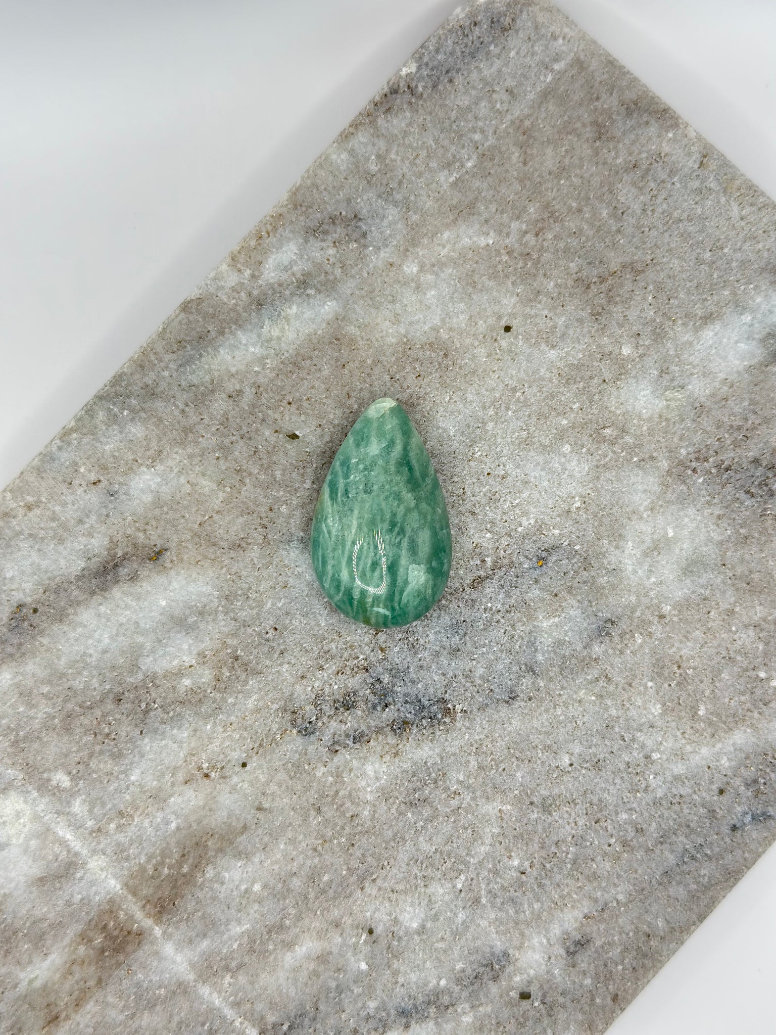 Gebruik en verzorging: Amazoniet kan beter niet te veel met water in aanraking komen.