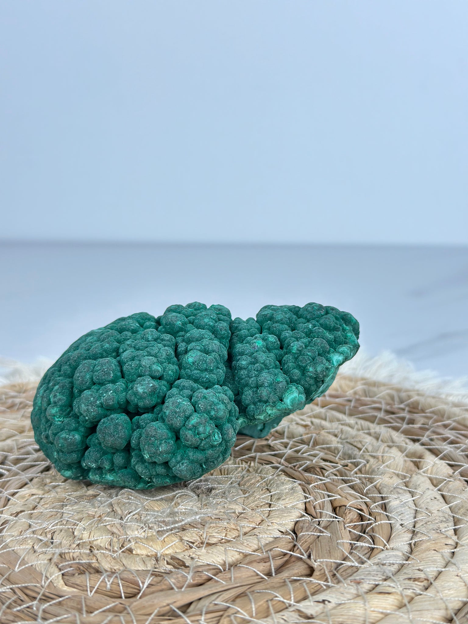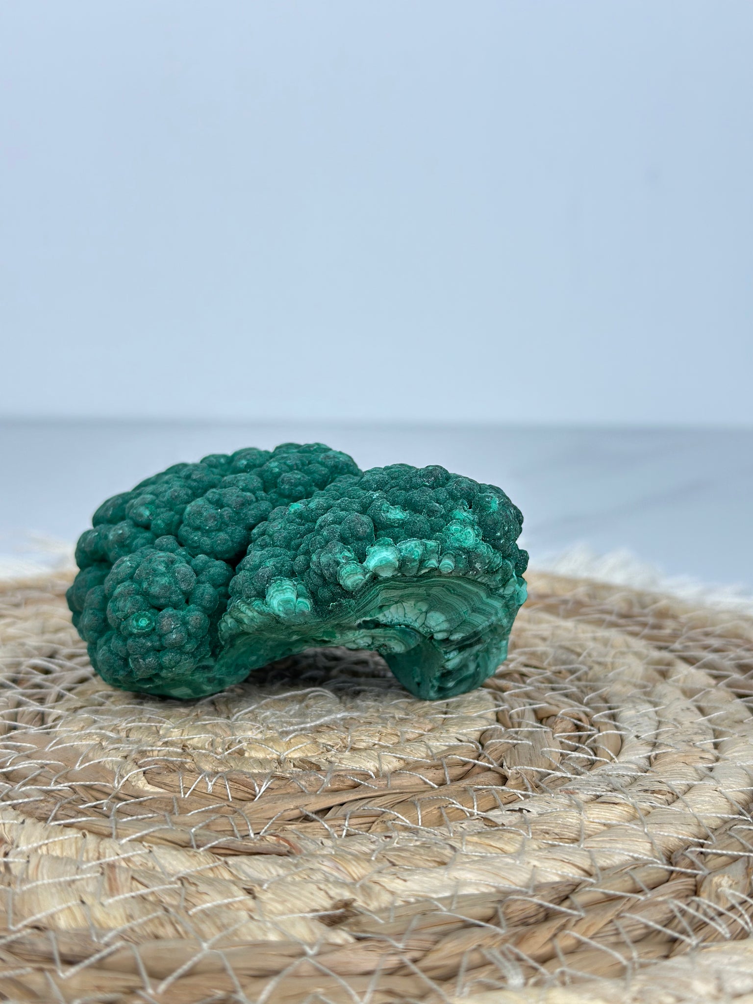 Gebruik en verzorging: Om de helende eigenschappen van malachiet te behouden, is het belangrijk om de steen regelmatig te reinigen. Het wordt aanbevolen om malachiet uit de buurt van direct zonlicht te houden, omdat dit de kleur van de steen kan vervagen. Malachiet kan niet tegen water, het wordt giftig.
