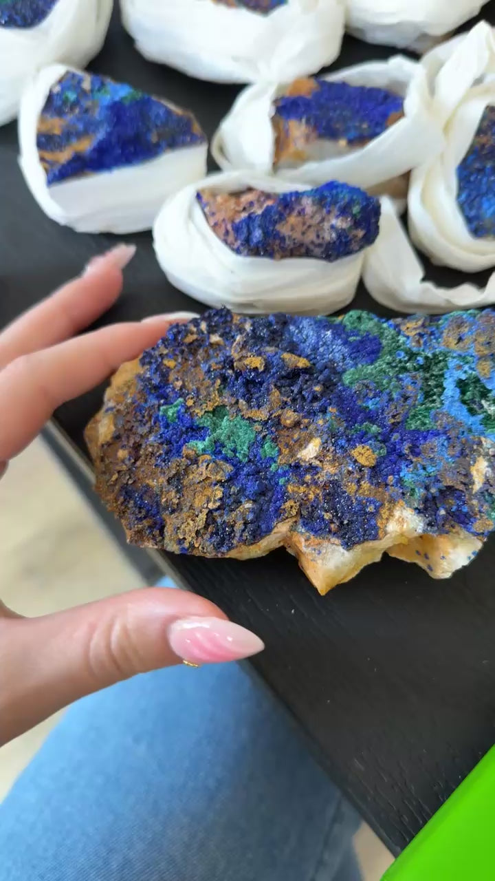 Azuriet met malachiet is een krachtige combinatie die hoofd en hart in balans brengt. Het diepblauwe azuriet opent het derde oog en bevordert intuïtie en spiritueel inzicht, terwijl het groene malachiet helpt bij emotionele heling en persoonlijke groei. Samen ondersteunen ze bewustwording, transformatie en bescherming tegen negatieve energie.