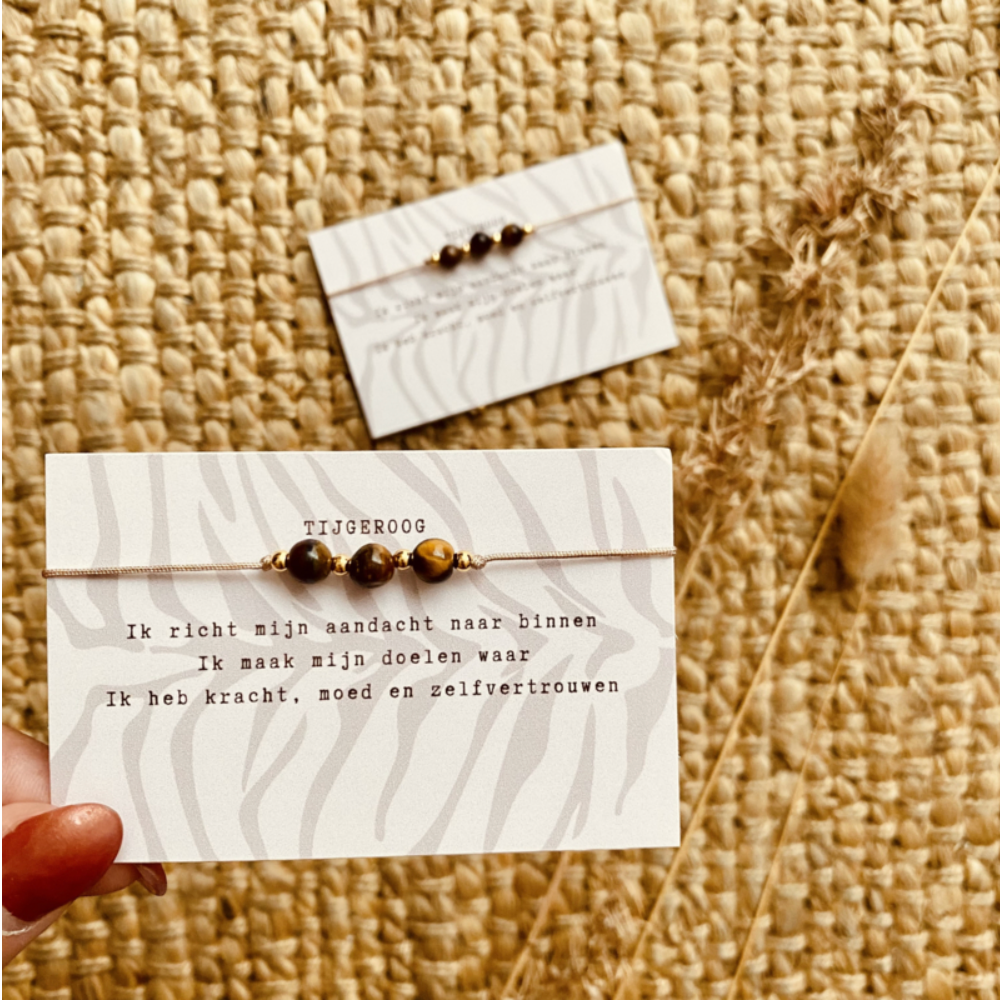 De armbandjes zijn verstelbaar met een schuifknoopje. Het is een knoopje wat naar één kant openschuift. Het kan dus zijn dat het knoopje bij jou niet preciés in het midden sluit, maar dit is totaal niet storend.