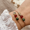 De armbandjes zijn verstelbaar met een schuifknoopje. Het is een knoopje wat naar één kant openschuift. Het kan dus zijn dat het knoopje bij jou niet preciés in het midden sluit, maar dit is totaal niet storend.