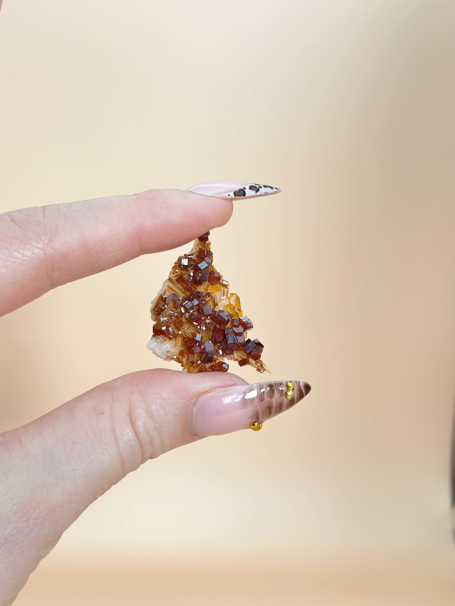 Vanadiniet is een kwetsbare steen en mag niet in contact komen met water of chemische middelen. Reinig de steen daarom uitsluitend energetisch, bijvoorbeeld door hem te smudgen met salie of palo santo, of door hem op een selenietplaat te plaatsen.