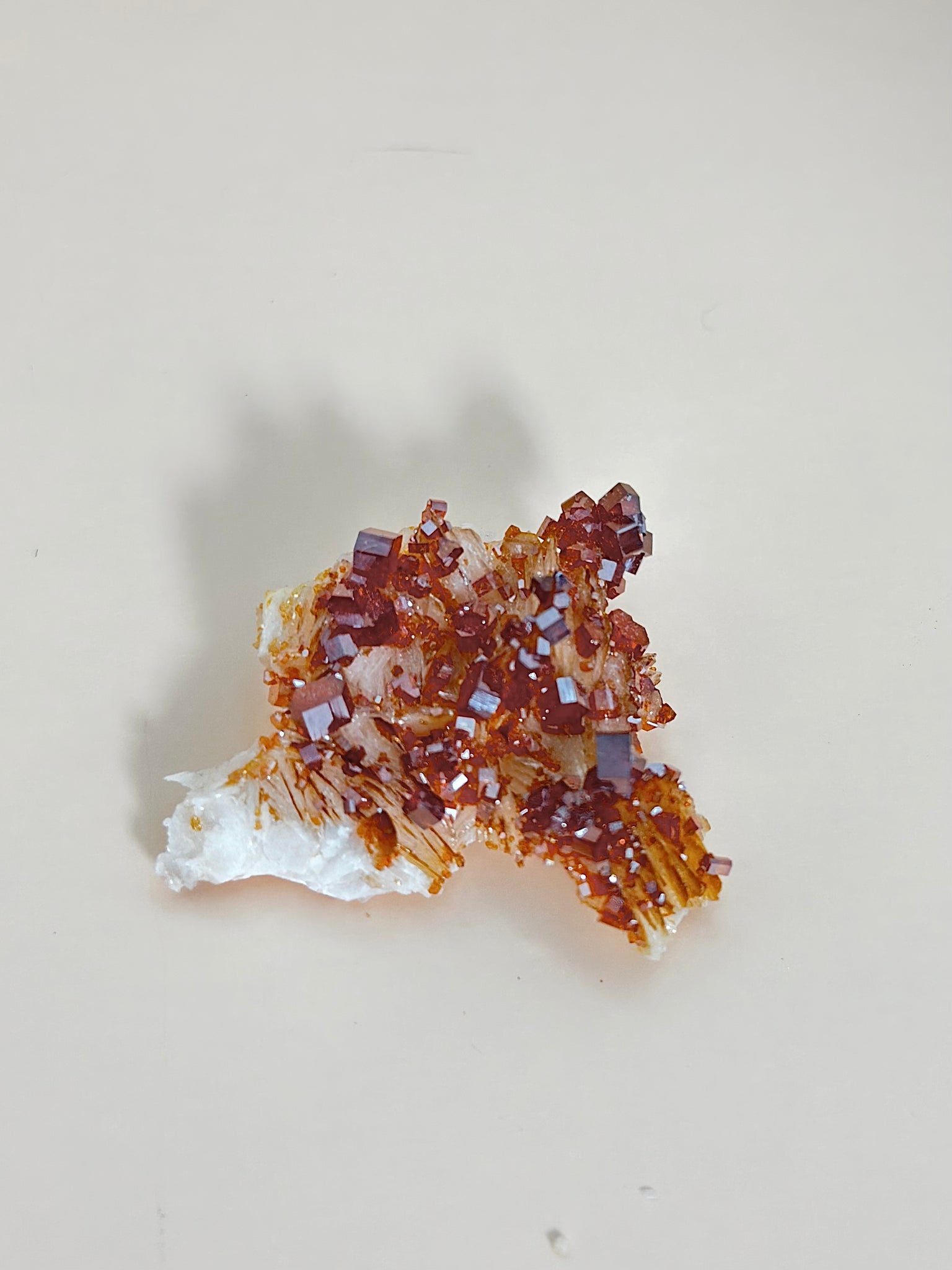 Vanadiniet is een opvallende en krachtige edelsteen met vurige rood-oranje tinten die direct energie en vitaliteit uitstralen. Deze steen staat bekend om zijn stimulerende werking op motivatie, concentratie en doorzettingsvermogen. Vanadiniet helpt je om ideeën om te zetten in actie en ondersteunt bij het realiseren van doelen en dromen.